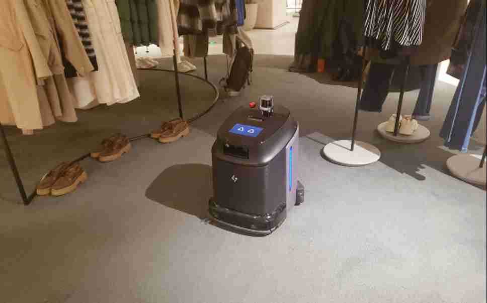门店采用租用清洁机器人业务模式,,保洁员配合机器人,,保障清洁质量,,落实人+机结合清洁理念。。。由1台清洁机器人每日定时多次进行洗地、、、、尘推、、、吸尘及清扫作业。。。保洁人员配合进行垂直清洁及边角清洁。。。机器人释放180H/月的工时,,相当于1-1.5个岗位。。。按时薪25元/小时算,,,,释放工时价值:¥4500/月。。。。