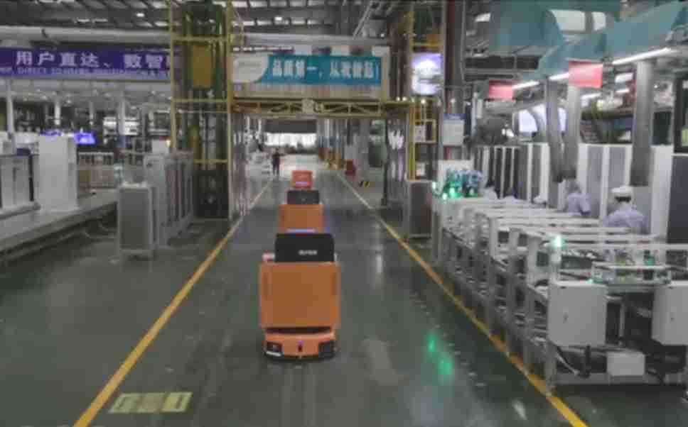 为车载冰箱物流配送打造的智能解决方案,,,包含产中物流通过潜伏举升AMR搬运至线边,,产后成品物流智能仓储,,,流程包含产中物流智能齐套入库,,线边安灯叫料AMR智能配送至线边,,,成品入库、、、出库,,,,通过无人堆高车机器人,,,智能仓储管理替代人工作业管理,,实现更高存储、、更高效率、、更具柔性化的解决方案。。。